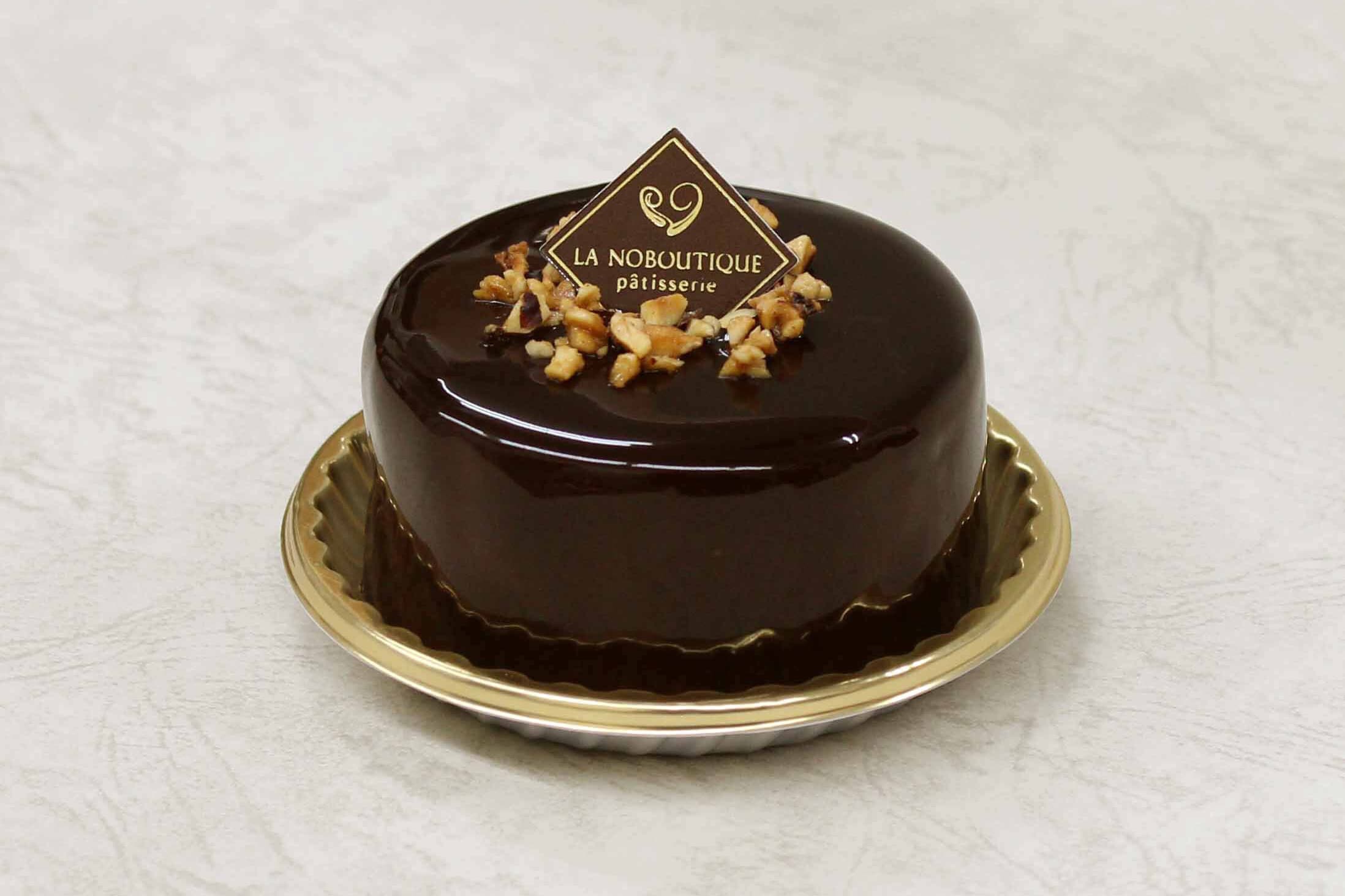 ヘーゼルナッツ風味の香ばしくコクのある生地にくるみリキュールで香りをつけたクレーム・シャンティを合わせ、艶やかなグラサージュをかけた日髙シェフの自慢の逸品です。